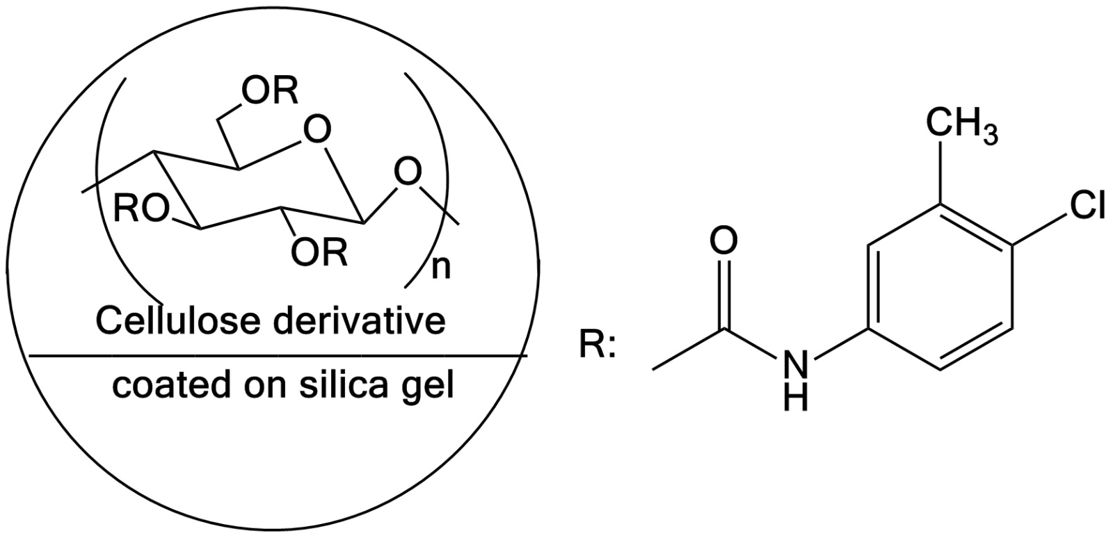 硅膠表面涂敷有纖維素-三(3-氯-4-甲基苯基氨基甲酸酯) |